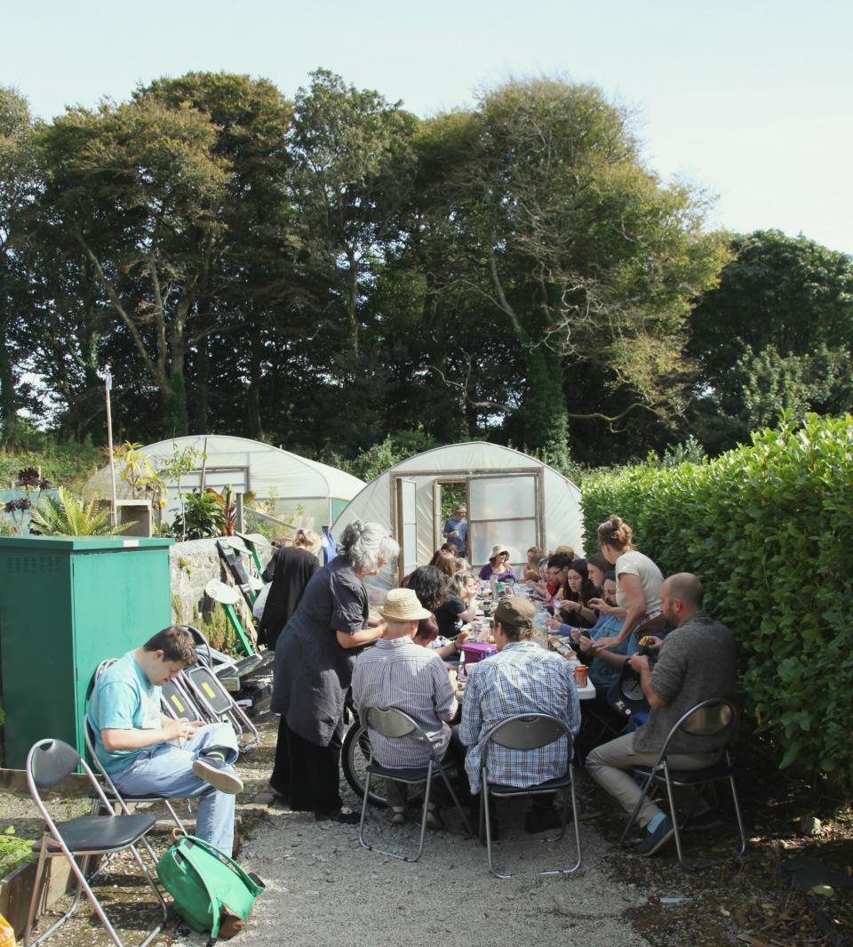 The inspirational Newlyn based Shallal Dance Theatre came to take part in a workshop, run by Jane Bailey on 23 September. A very productive day was had by all. It was like a big mediterranean family get together working outside the polytunnel in the sun!