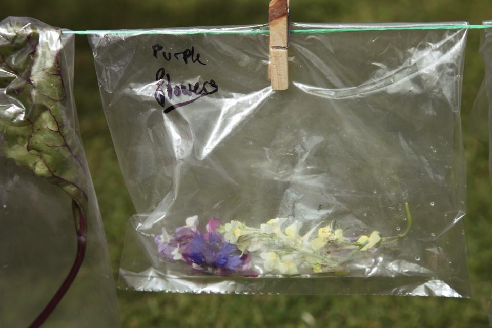 This workshop enabled the children from St Maddern’s Church of England Primary School to revisit the vegetable walled garden and so build on their plant identification training. Plants were touched, smelt and samples carefully picked. The children worked in small groups and numbered and bagged their samples. Words and colours also got bagged.