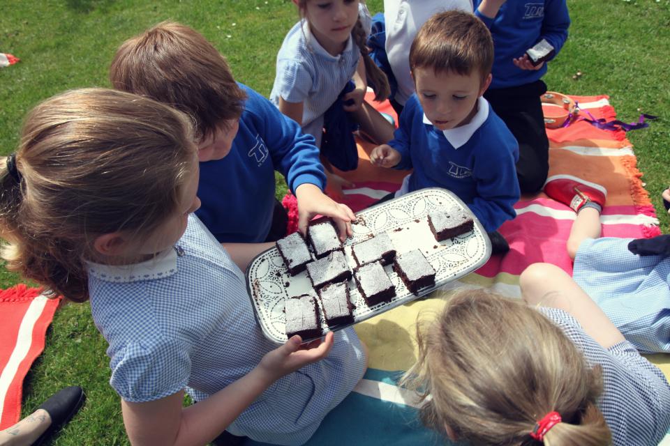 After playtime, Nicky from the restaurant made an appearance and led the children to the bee hives and then to the restaurant garden where blankets under apple trees awaited them. She gave them a talk about the cost of food in the restaurant compared to the cost of it when pulled in the vegetable garden. She then produced slices of chocolate cake and when they had all finished eating it, she announced it was beetroot cake. The children loved it and there was a request for courgette and lettuce cake!